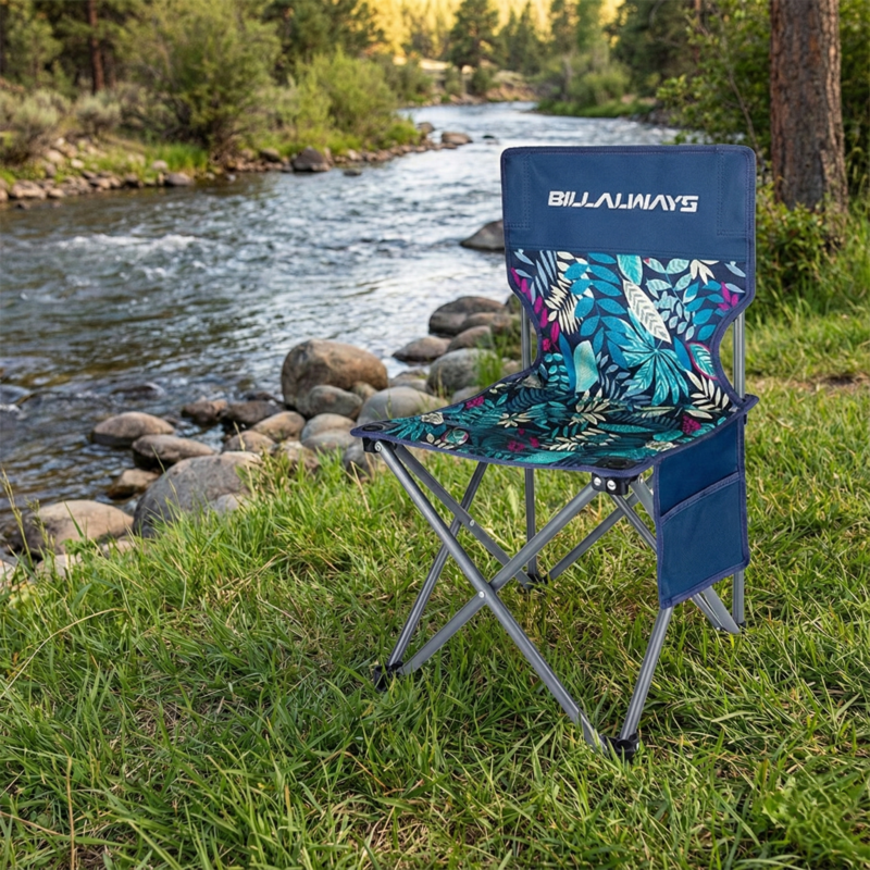 Enhance your outdoor comfort with the folding camping chair, the ultimate portable companion for your adventures. This chair is engineered for durability and stability, featuring a thick spray steel pipe bracket for a robust frame that is built to last. The seat and backrest are crafted from high-density Oxford cloth, providing excellent support and withstanding the rigors of outdoor life, whether you are at the beach, camping, or hiking. A key benefit is its superb portability: the chair effortlessly folds down and fits into its included carrying bag with a shoulder strap for simple transport and storage. The design also includes a handy side pocket for easy access to small essentials like a phone or water bottle. This durable, ultra-portable seat with a supportive backrest provides home-like relaxation wherever you go.