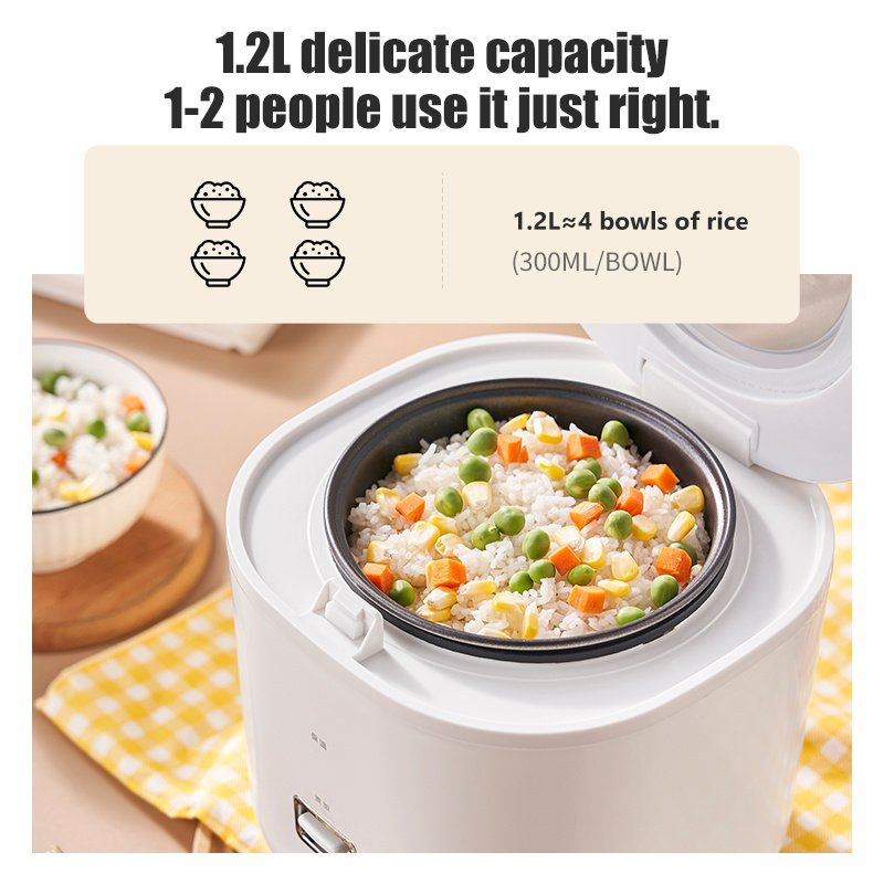 • Compact 1.2L Capacity: Perfectly sized to prepare up to four bowls of rice, making it an ideal solution for individuals or small households.