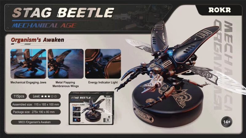 Experience the fusion of natural biodiversity and advanced engineering with this stunning stag beetle model. Perfect for condo living and desktop displays, this compact masterpiece adds a touch of industrial elegance to any modern space.