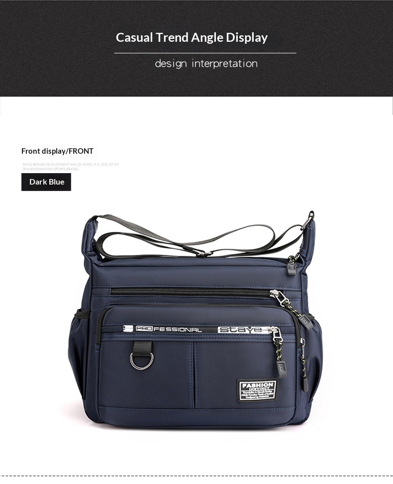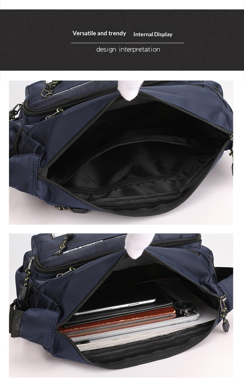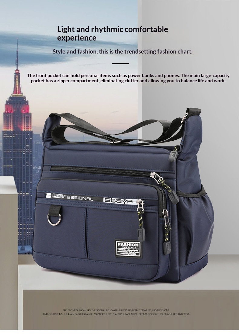Experience a light and comfortable journey with this mens crossbody business travel bag. Designed for the modern professional, this shoulder bag is crafted from sturdy Oxford fabric that is both wrinkle-resistant and easy to clean. The multi-pocket design helps you balance work and life by eliminating clutter; the front pocket provides quick access to your phone or power bank, while the large-capacity main compartment features a secure zipper divider for organized storage. Engineered for daily rigors, this bag is waterproof, abrasion-resistant, and cut-resistant, ensuring your belongings stay safe. With integrated load-reducing and spine-protecting features, it provides a rhythmic and ergonomic carrying experience whether you are commuting or traveling for business.